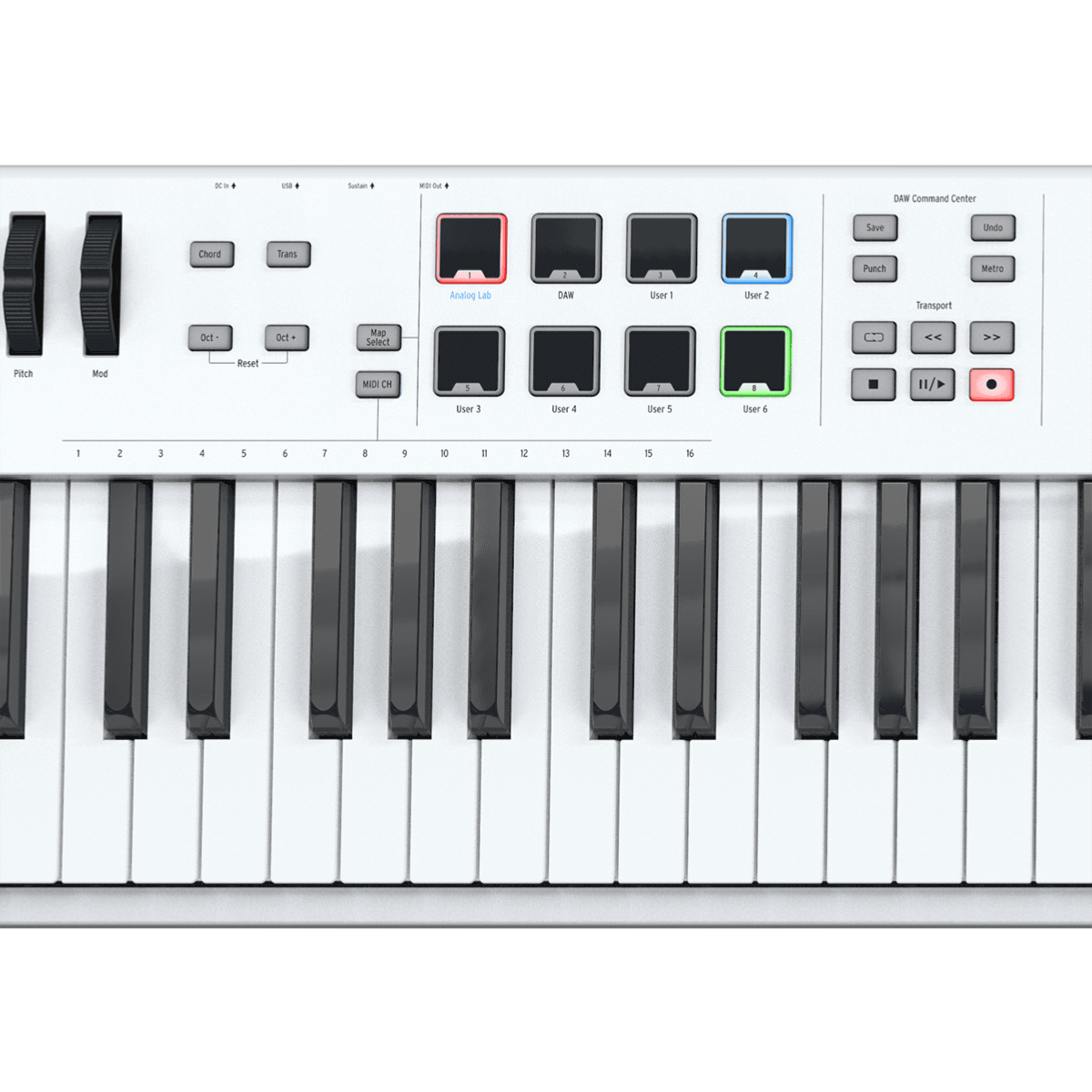 • Logiciels fournis : Ableton Live Lite, Analog Lab 4, Uvi Grand D
