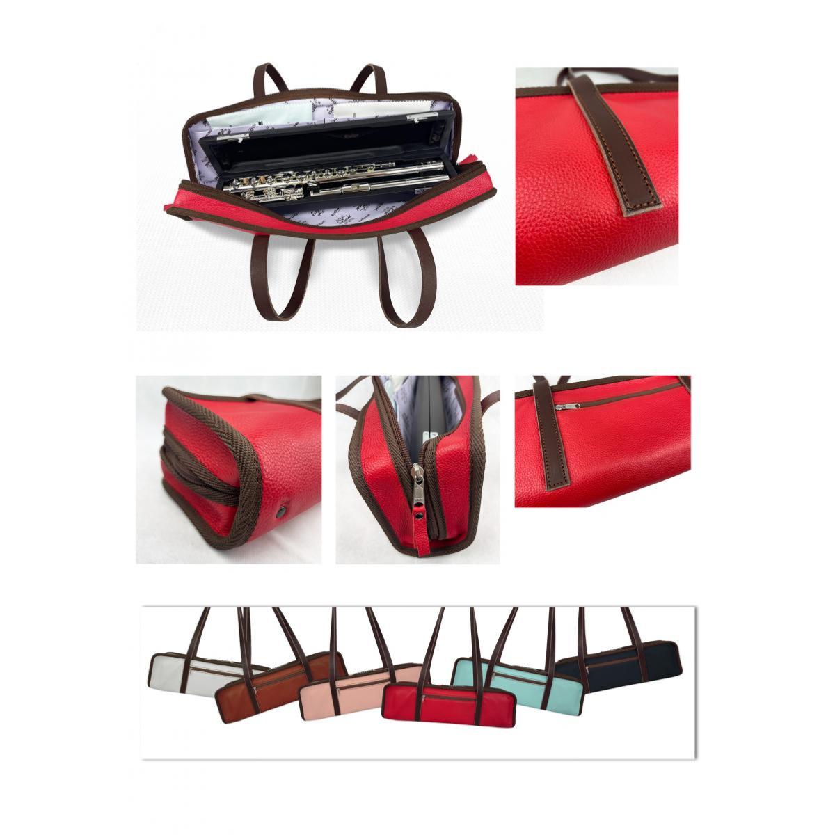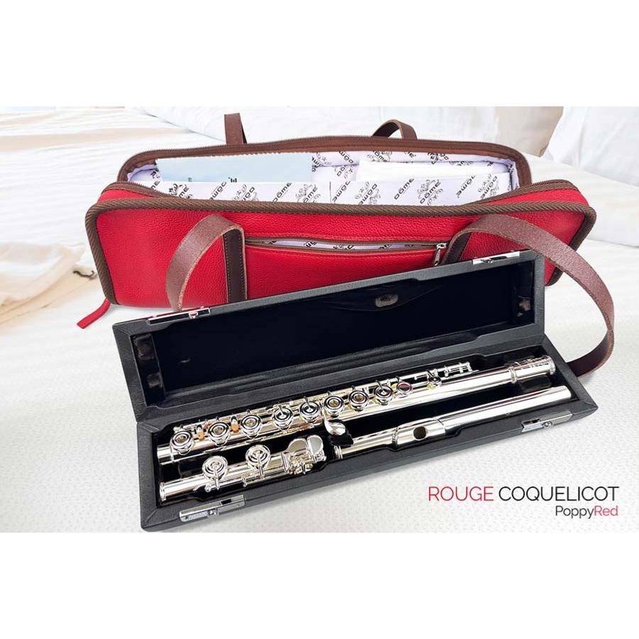 Dôme France "One Way" DFOW-RC - Sac en Cuir pleine fleur pour flûte - Rouge Coquelicot