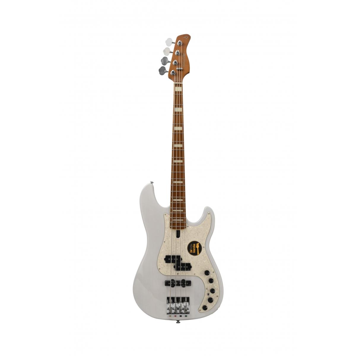La basse M. MILLER P8 Swamp Ash-4 WB MN adopte une forme Precision Bass, un corps en Frêne des Marais, un manche et une touche en Erable torréfié, le tout magnifié par une finition White Blonde.
