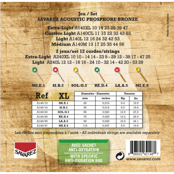 Son expérience de plus de 245 ans dans la fabrication de cordes de musique et plus de 70 ans dans la fabrication de cordes Acoustic Bronze et Phosphore bronze a conduit SAVAREZ à mettre cette impressionnante expérience à profit pour apporter un «plus» significatif à une nouvelle gamme de jeux.