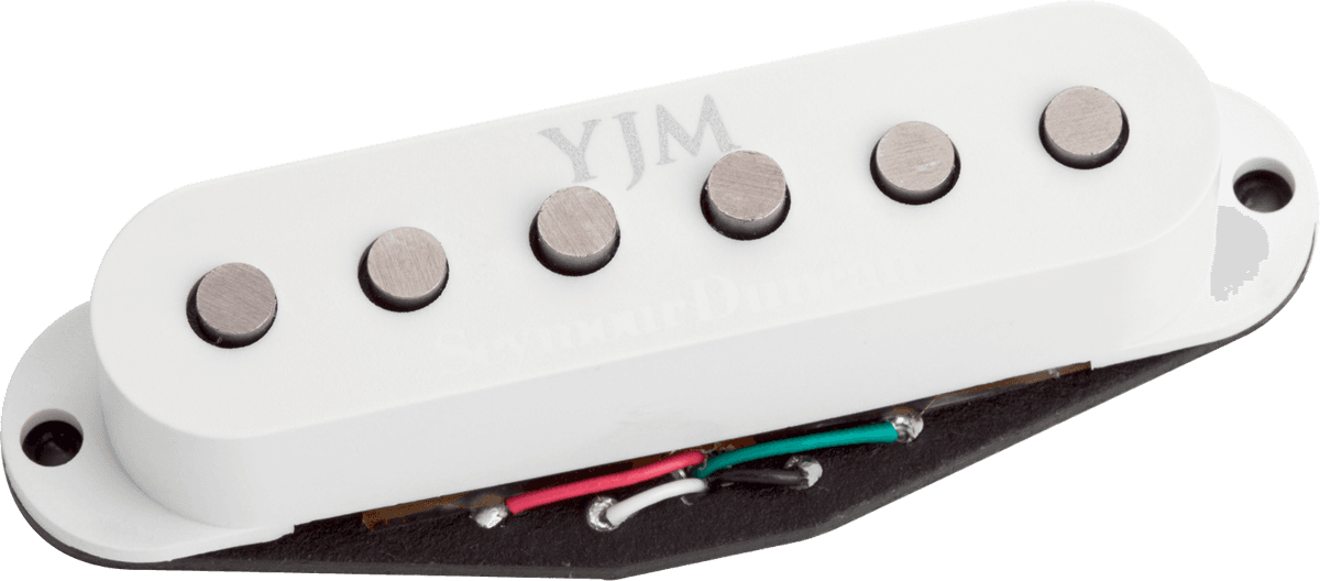 YJM Fury STK-S1B-W- Applications : Rock neo-classical shred hard rock power metal et heavy metal.- Position : Chevalet- Aimant : Alnico V- Split : Oui- Actif : Non- Nombre conducteurs : 4- Rsistance : 25.65 k- Pic: 6.48 KHz- Finition : Blanc- Autres : Anti interfrences. Double format simple.